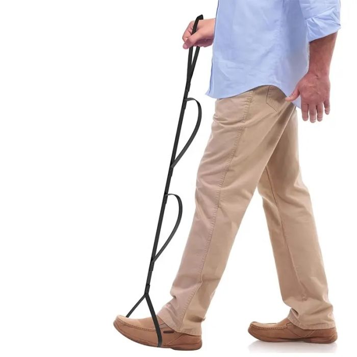 Båndet er lavet af et kraftig, nylon gjord-bånd og er 1 m X 2,5 cm med 4 løkker. Ideelt til ben løft ved ind- og udstigning af bil, seng og stol eller andre steder der er behov for ekstra hjælp eller træning til at flytte/løfte benet.