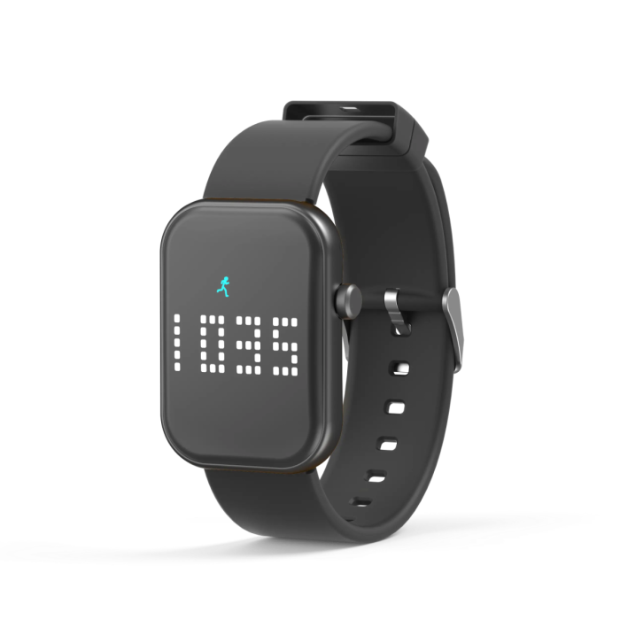 Uret har et rektangulært display og leveres med en behagelig silikonerem.