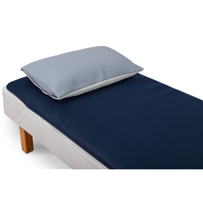 Pudebetrækket er lavet i to lag Treat-Eezi polyesterstof, og det kræver kun, at den øverste blå overflade kommer i kontakt med både hoved og ører, som er sårbare over for vævsskader.